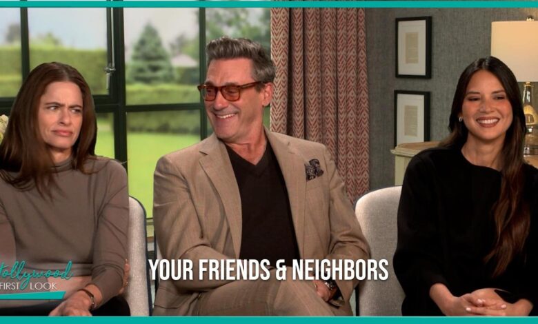 Hollywood First Look sat down with Jon Hamm, Amanda Peet, and Olivia Munn from Your Friends & Neighbors. After being fired in disgrace, a hedge fund manager still grappling with his recent divorce, resorts to stealing from his neighbors’ homes in the exceedingly affluent Westmont Village, only to discover that the secrets and affairs hidden behind those wealthy facades might be more dangerous than he ever imagined.