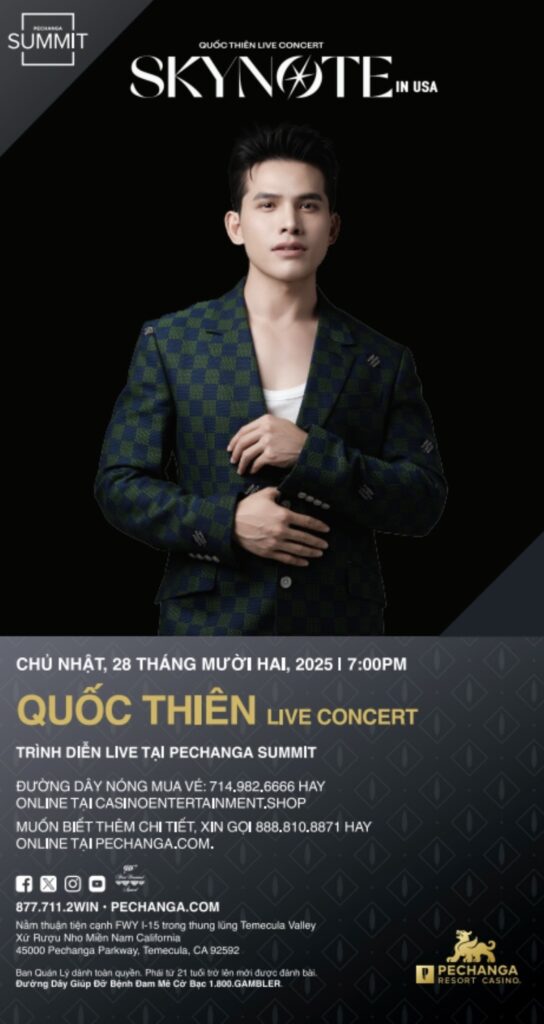 If your perfect December evening involves powerhouse vocals, infectious humor, and a healthy dose of V-pop charm, go ahead and circle December 28, 2025, on your calendar. Pechanga Resort Casino is rolling out the red carpet for “Quoc Thien Live Concert – SKYNote in USA,” a one-night musical celebration featuring one of Vietnam’s most beloved modern voices.